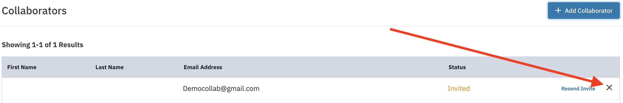 Enter the email address linked to the collaborator’s account and click Invite Collaborator.