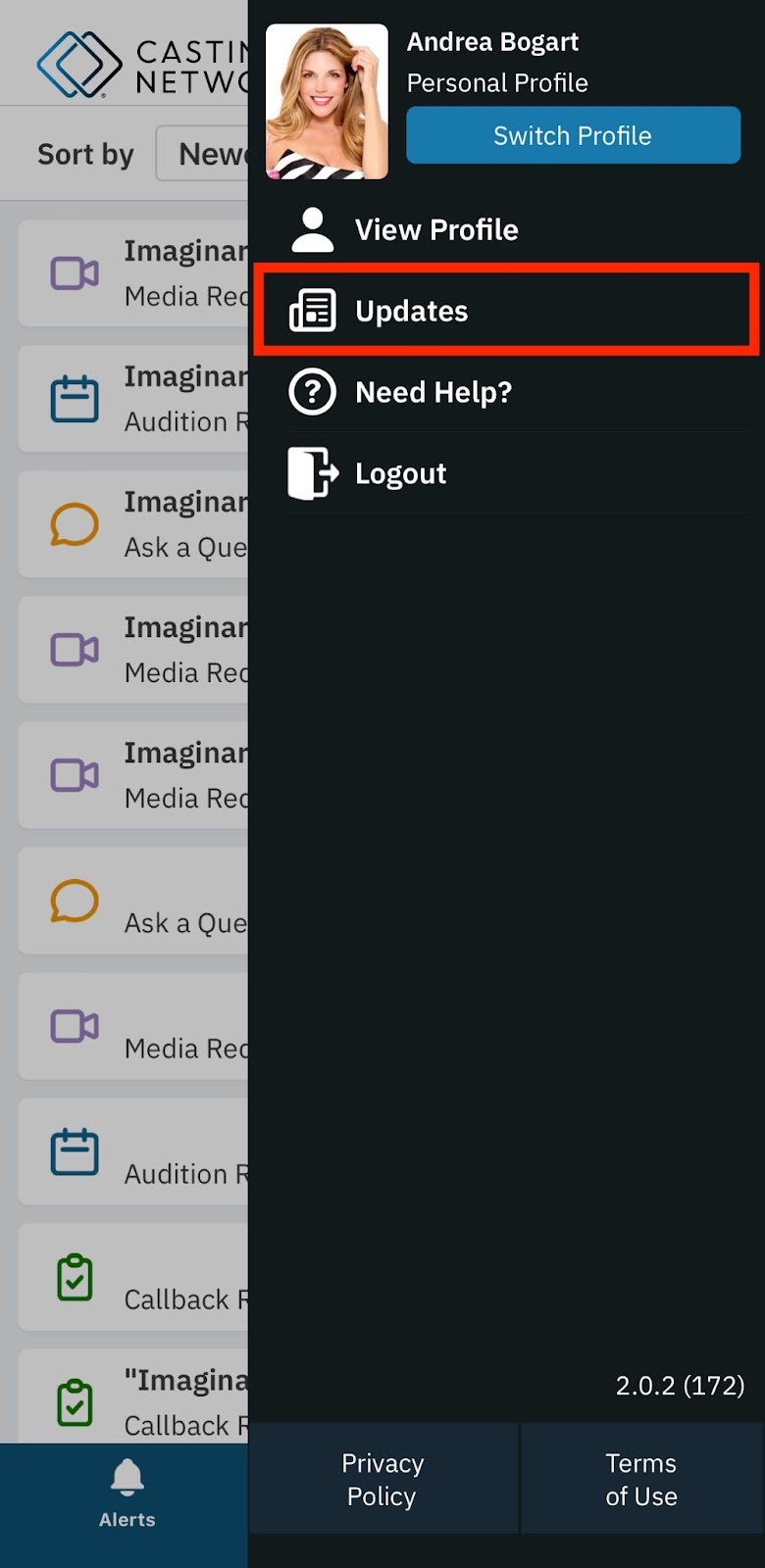 This article is for Talent and Talent Representatives who want to stay informed about the latest news from Casting Networks. We'll show you how to find and use the "Updates" feature within the mobile app so you never miss an important announcement.