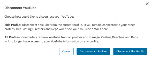 On the next screen, choose how you’d like to disconnect, either from this profile or all profiles.