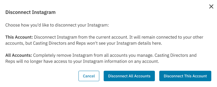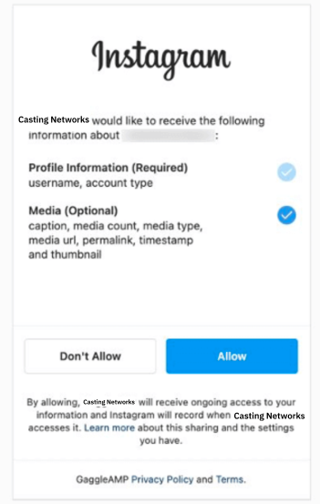 You’ll be presented with a popup from Instagram to give permission to link your account to Casting Networks.