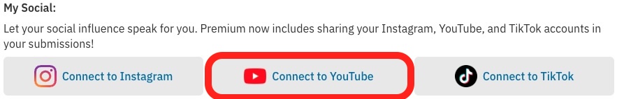 When connecting YouTube, an icon will be displayed on your profile with the amount of YouTube subscribers you have.