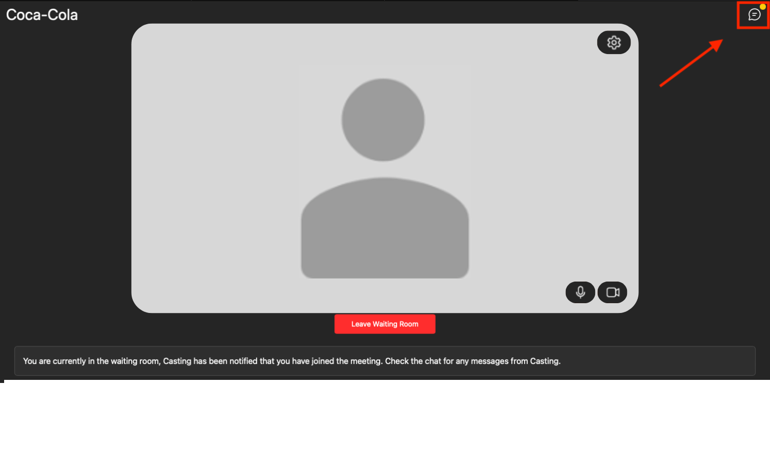 In the Waiting Room: If the casting director sends you a message while you're in the waiting room, a notification will appear in the top right corner of the screen. Click on it to read the messag
