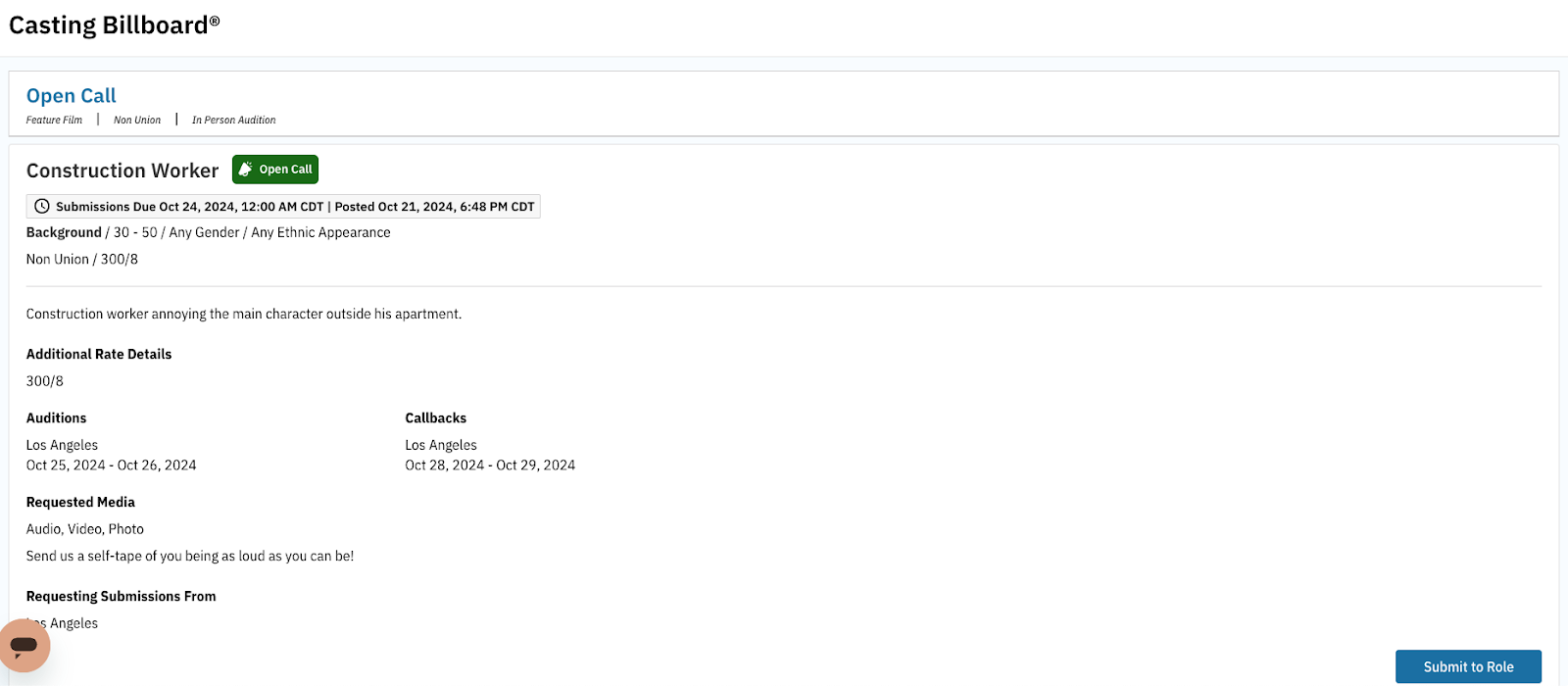Visit the Open Call link provided by the Casting Director or the Open Call role on Casting Billboard.
