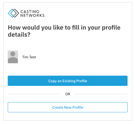 You will then have the option to Copy an Existing Profile (to transfer credits, stats, and information) or Create New Profile from scratch. Once your personal profile is created and you have an active Premium Membership, you will be able to submit to roles.