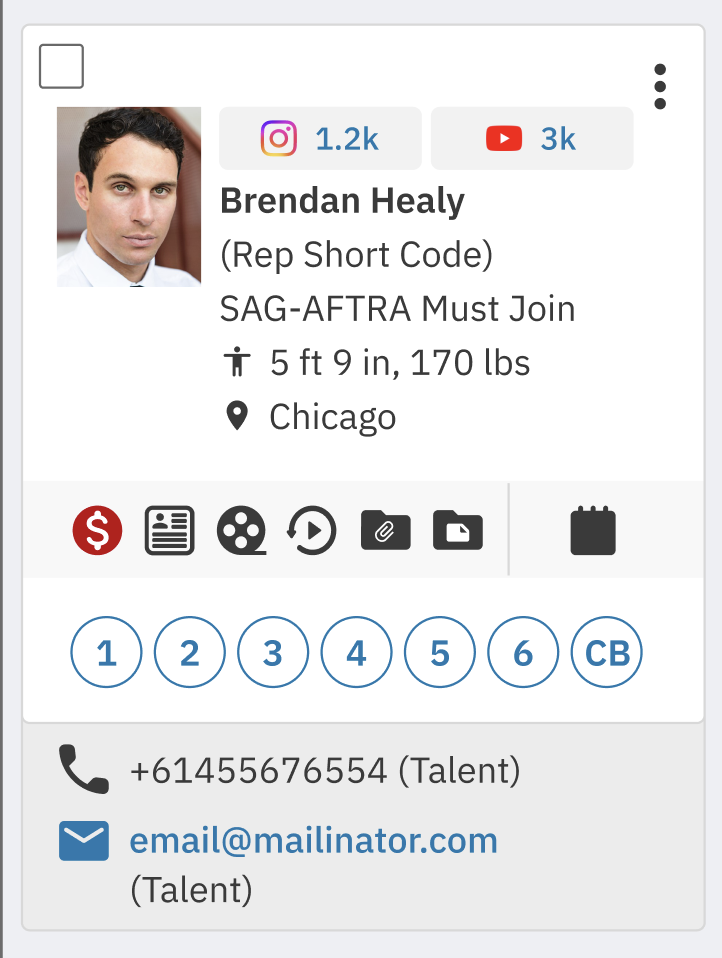 If the talent has linked their Instagram, YouTube, or TikTok, their follower count and subscriber count will appear directly on their baseball card.