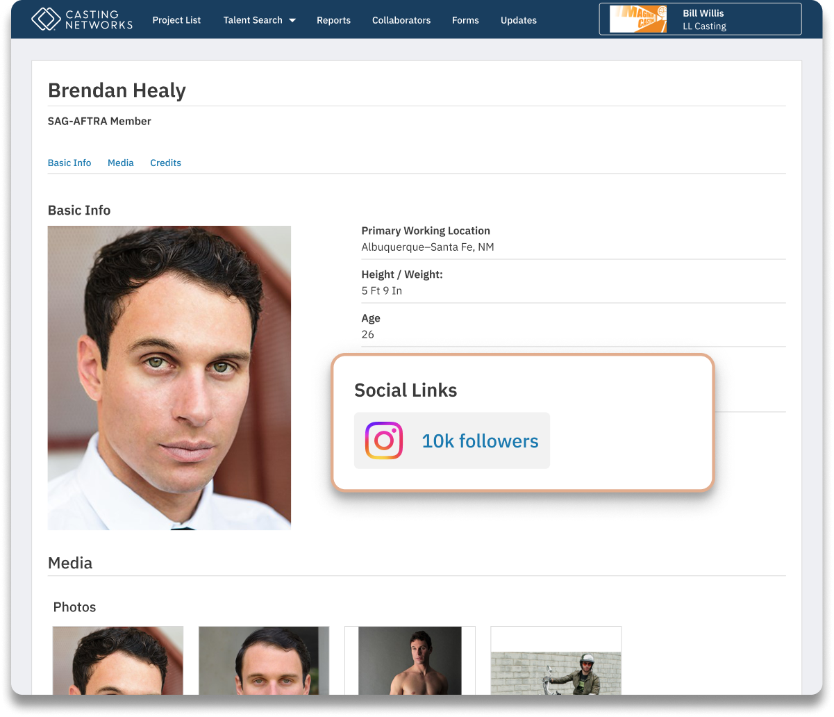 CASTING DIRECTORS: How do I View Linked Social Media on Talent Profiles?