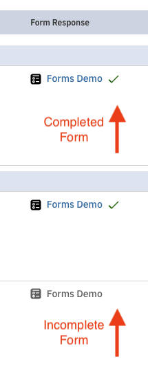 Completed forms will have a checkmark next to them and will be a clickable link.