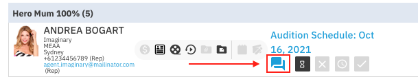 Select the chat icon to the right of a talent's information.