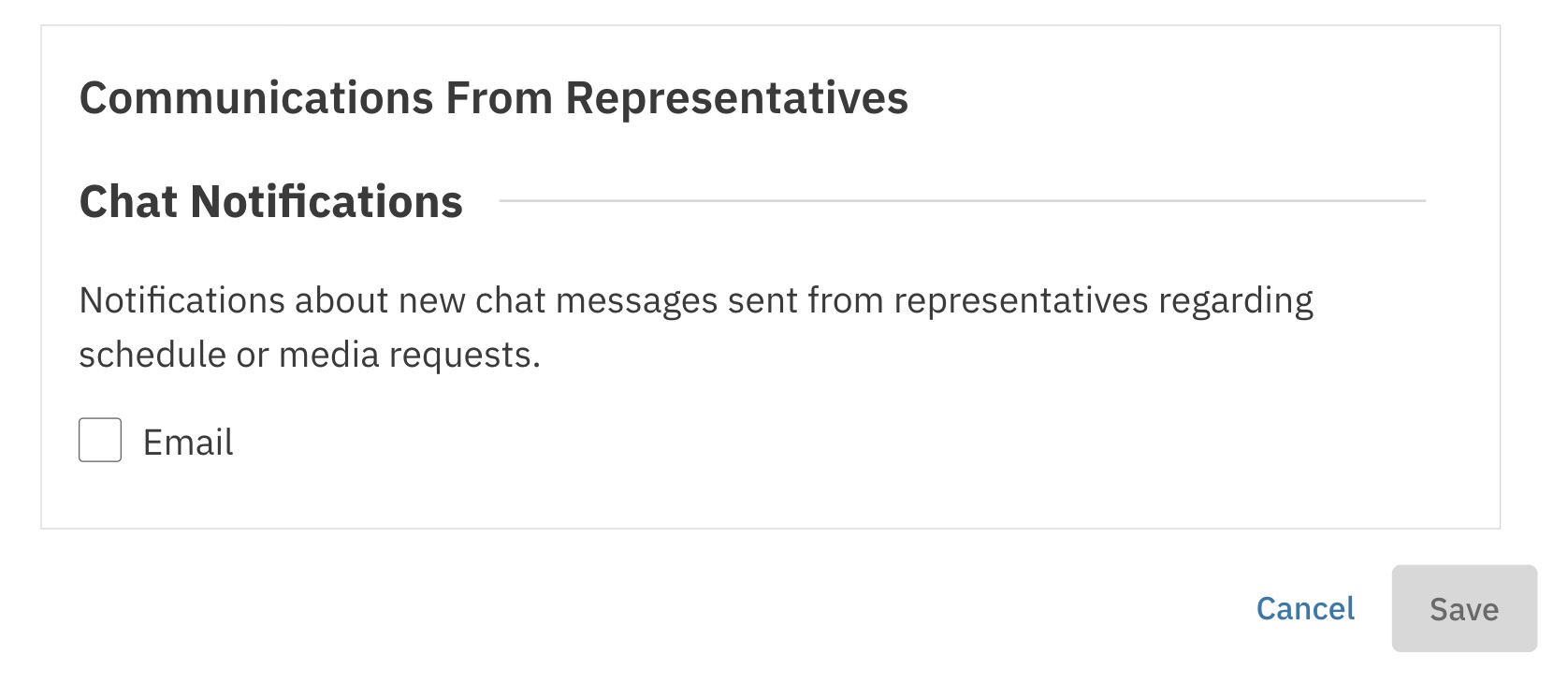 You can choose to be notified via email when Representatives send new messages within a project. To update your notification preferences: