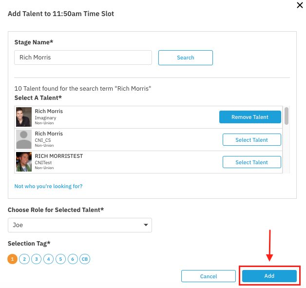Adding Talent to a Schedule