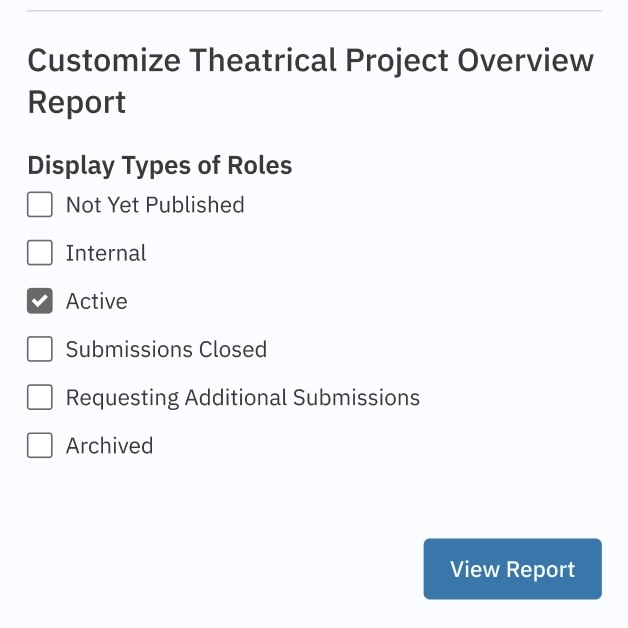 In the "Report Type" drop-down menu, select Theatrical Project Overview.