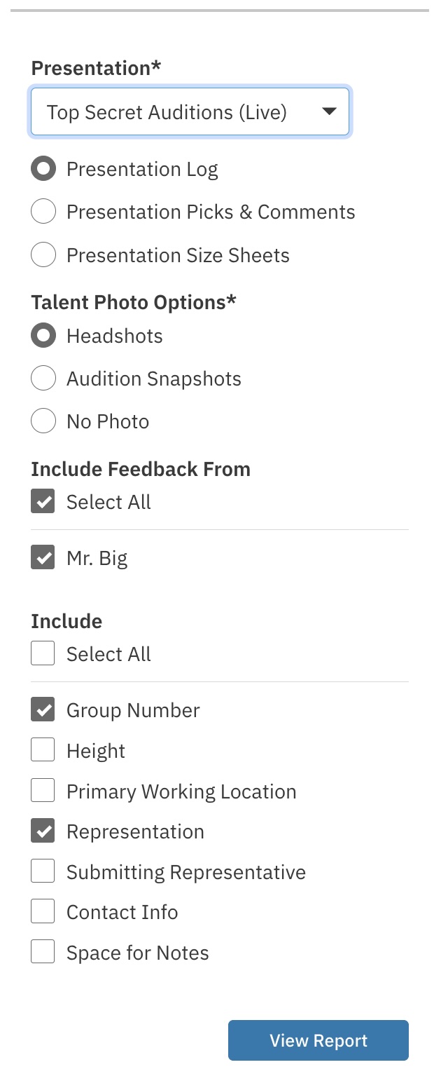 In the "Report Type" drop-down menu, select Presentation Report.