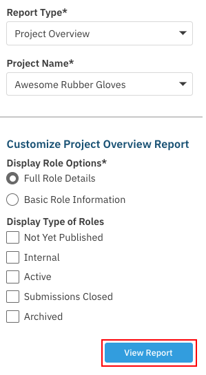 In the "Report Type" drop-down menu, select Project Overview.