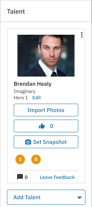 Snapshots & Photos: Set talent snapshots and import photos.