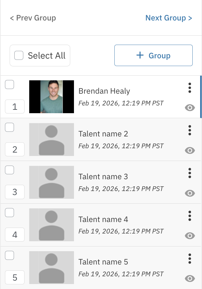 The Session page now combines the "Group Detail" and "Session Detail" pages into a single, unified experience. Designed specifically for Casting Directors, this feature streamlines your workflow by allowing you to manage groups, review media, and organize talent in one location, saving you time and ensuring you have all the tools you need in one view.