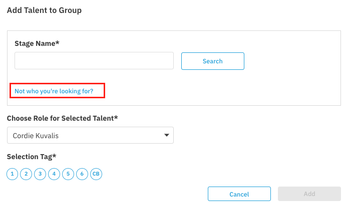 You can also add talent that already exists on the platform by searching for them directly.