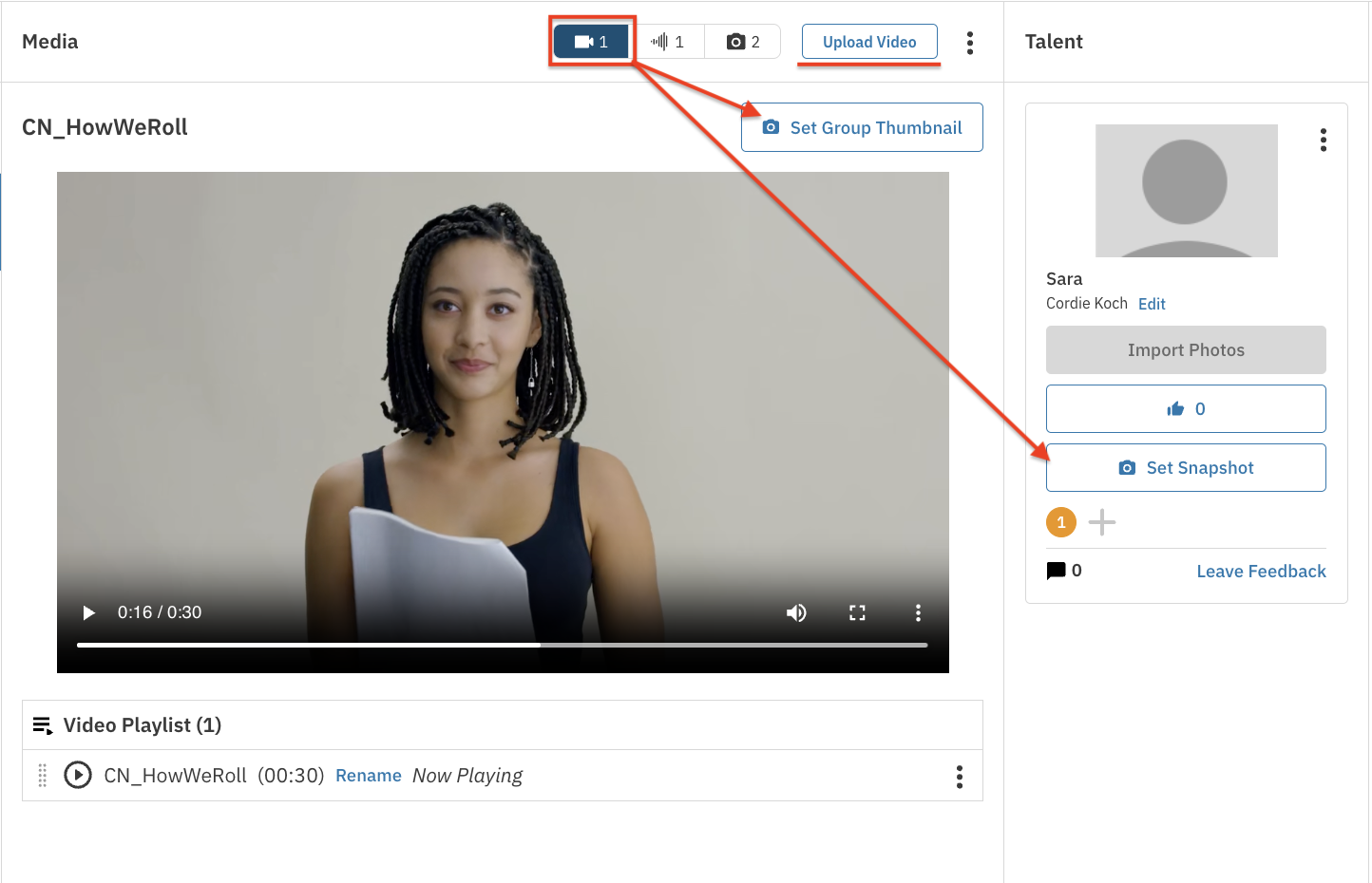 Look for the Talent section on the right-hand side of the screen. Click the Set Snapshot button located under the talent you want to update.