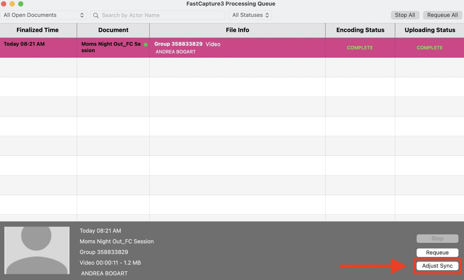 Requeue means the video is placed back into the processing line to be rebuilt with your new audio sync settings. You must wait for this process to finish for the changes to take effect.