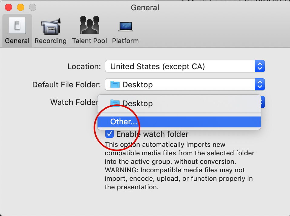 Create a New Folder (Title it ‘Watch Folder’), then Select to set it.