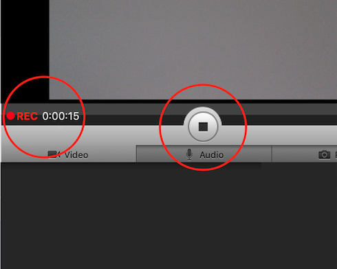 In full screen capturing mode, the controls function the same way: the red Record button turns to a black Stop button with the Time Code Counter displayed to the left.