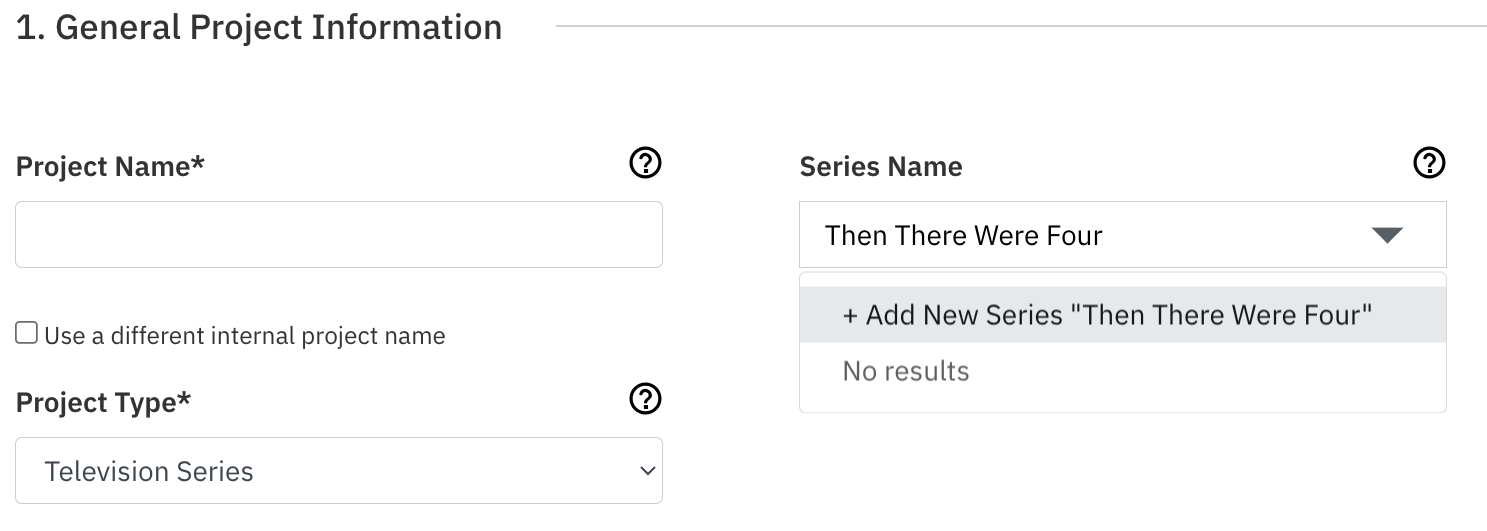 After selecting the project type as Television Series or Web Series, the "Series Name" field will appear.
