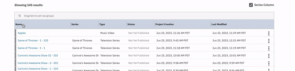 You have the option to drag and drop specific categories (Series, Type, and Status) to the top of the list to group your projects.