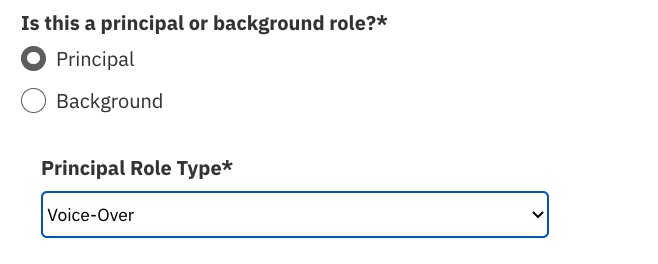Add a role to the project. Select Principal as the role type, and Voice-Over from the dropdown menu.