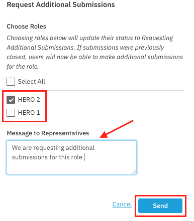 Select specific roles (or all roles) for which you’d like to receive submissions and add a message (optional).