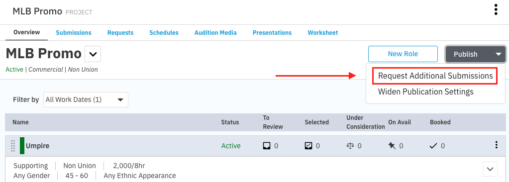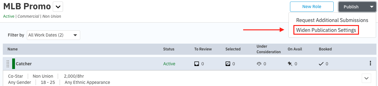 This article explains how to widen your publication settings to reach more agents/talent and how to request additional submissions for your active roles.