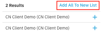 Once the search results are returned, click the plus sign (+) to add each representative company individually to the list or click Add All New To List to add all search results.
