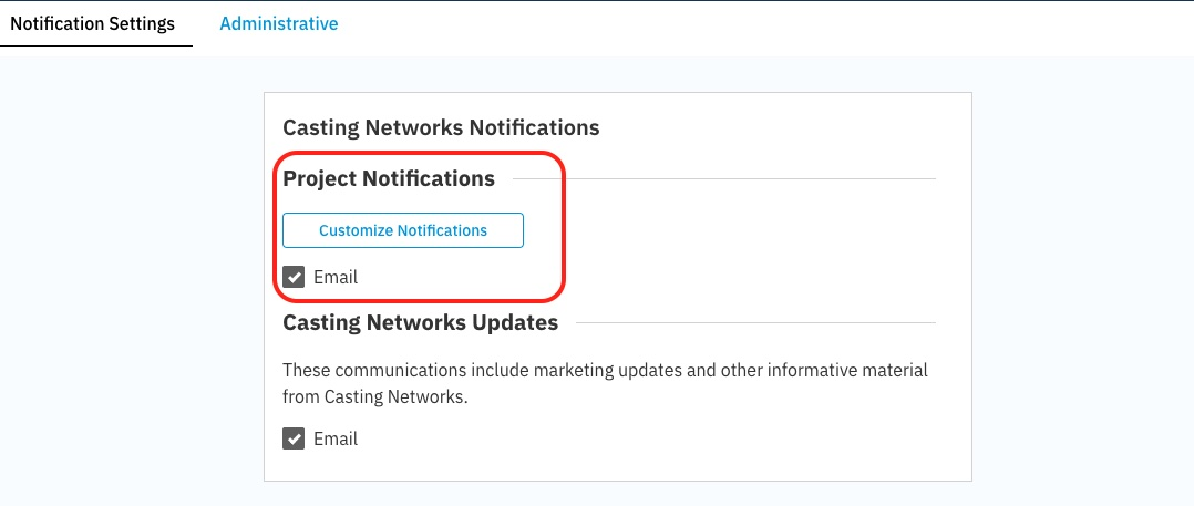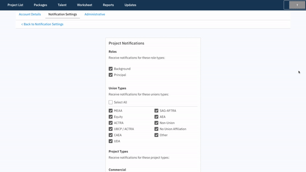 TALENT REPRESENTATIVE: How do I manage my project and role email notifications?