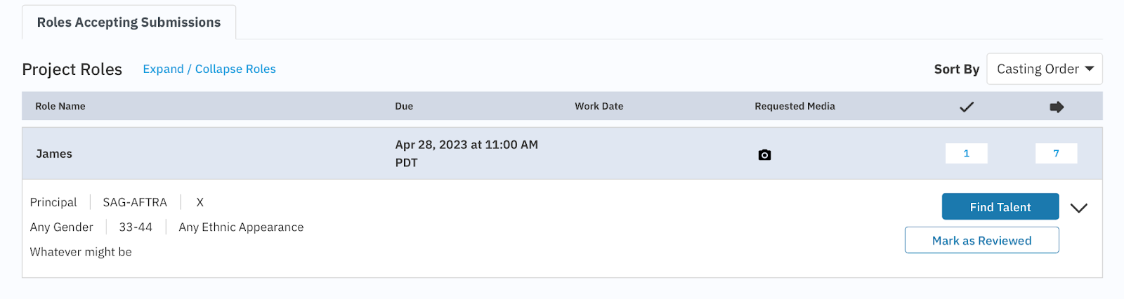 Autofill by Role Criteria; this adds filters for specifics Casting is looking for