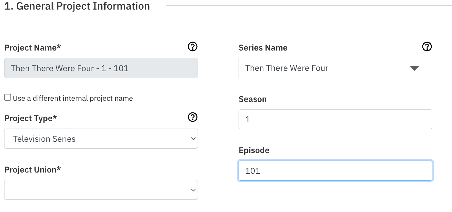 Please note: The system will automatically update the project's name to reflect the season and episode number as you type them in. All other steps for creating a new project remain the same.