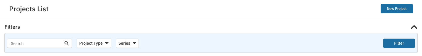 At the top of the page, you will see a Filters feature. This allows you to filter your view by Project Type and Series.