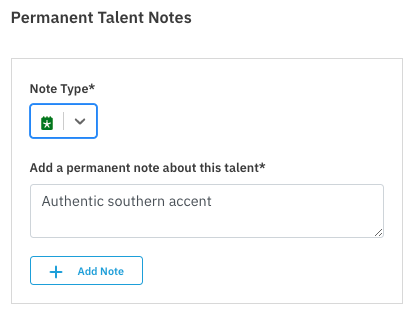 This article explains how to leave notes on submissions to keep your casting process organized. You can leave a permanent note on a talent's profile or a note specific to the project you are working on.