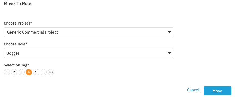 A window will appear asking where you want to send them. Choose which project and role you'd like to move the talent to and select Move.