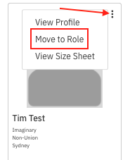 Locate the talent you wish to move. Select the three dots in the upper right corner of the talent's photo and select Move to Role.