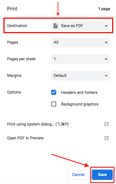 In the print options, click the Destination dropdown and select Save to PDF to download your report.